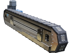 At Motion Index Drives we pride ourselves on innovative solutions. To solve the issues of limited space we manufacture a line of precision conveyors that produce the same speed and precision of a rotary table without taking up nearly as much real estate. The precision conveyors consists of precision-machined aluminum links which are driven by a high-performance unit consisting of an index drive, hardened bevel gear reducer and a brake motor. Hardened dual drive sprockets guarantee a backlash-free motion transmission between the drive unit and conveyor chain links, which translates to accuracies of up to (6 arcseconds ((+/- .006))